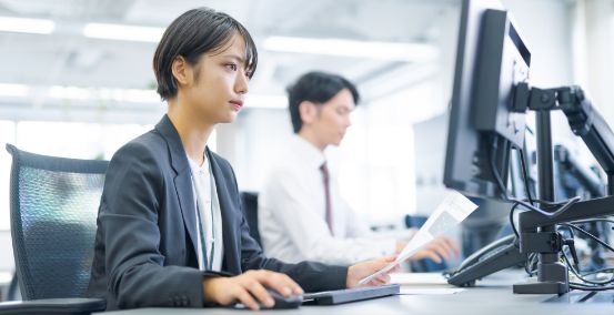 受注〜配送⼿配、在庫管理などを⾏う営業事務業務、または、輸出⼊に関する各種書類作成や各種⼿配などを⾏う貿易事務を⾏います。