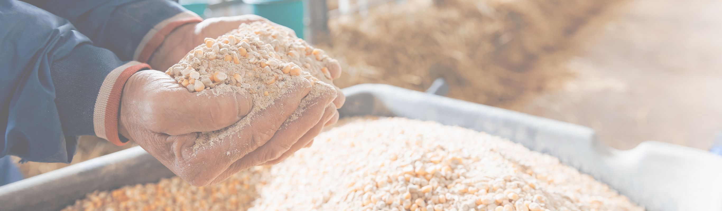 ⽜や豚、鶏などの家畜の経済的な⽣産には、栄養を考慮しブレンドされた配合飼料(エサ)が⽋かせません。当社ではその配合飼料の原料を調達から販売まで、徹底した品質管理や保管・輸送業務のコントロールを通じて、安⼼・安全・安定に供給しています。